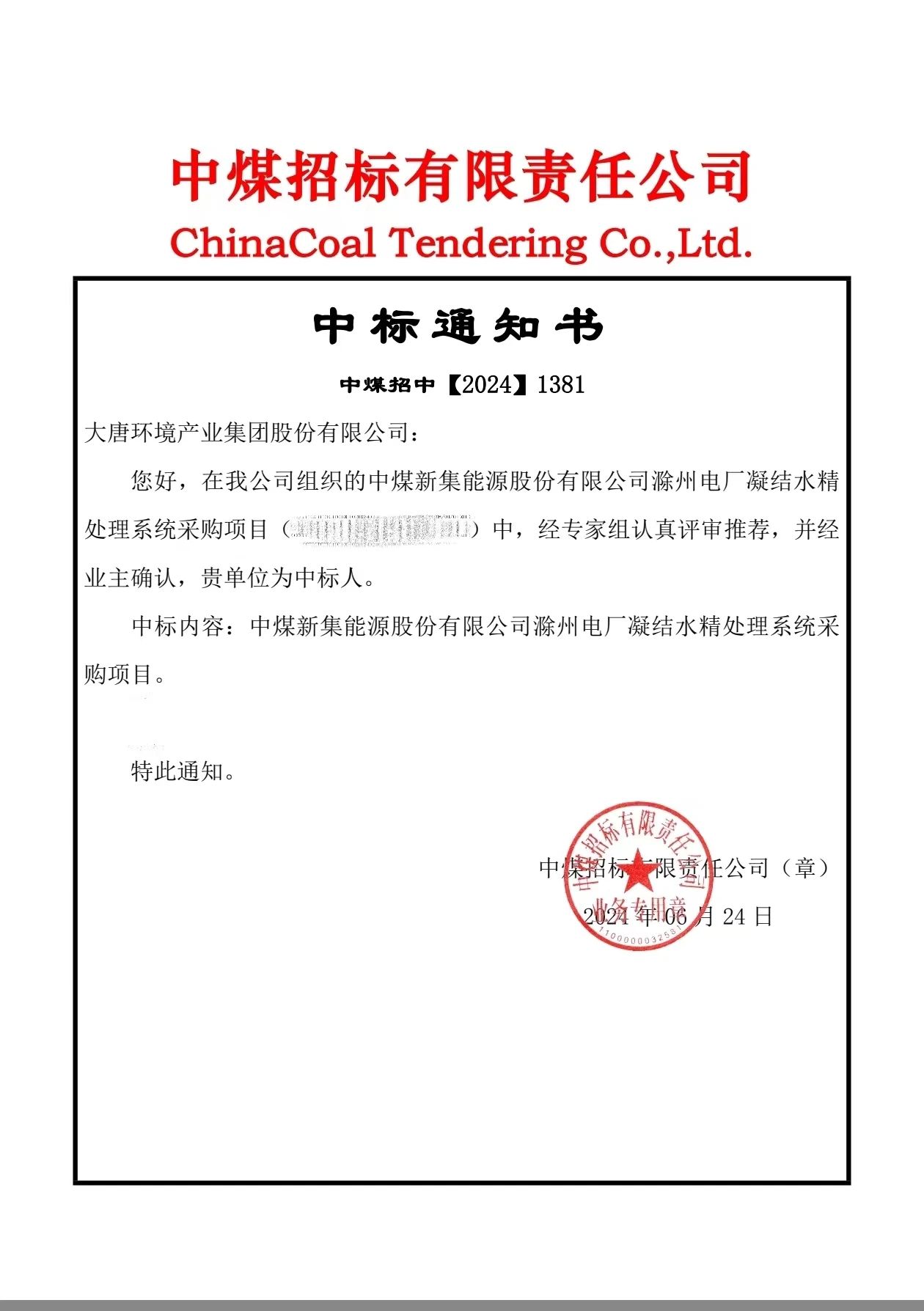 本網(wǎng)訊?近日,水務(wù)公司成功中標(biāo)中煤滁州電廠凝結(jié)水精處理項(xiàng)目。