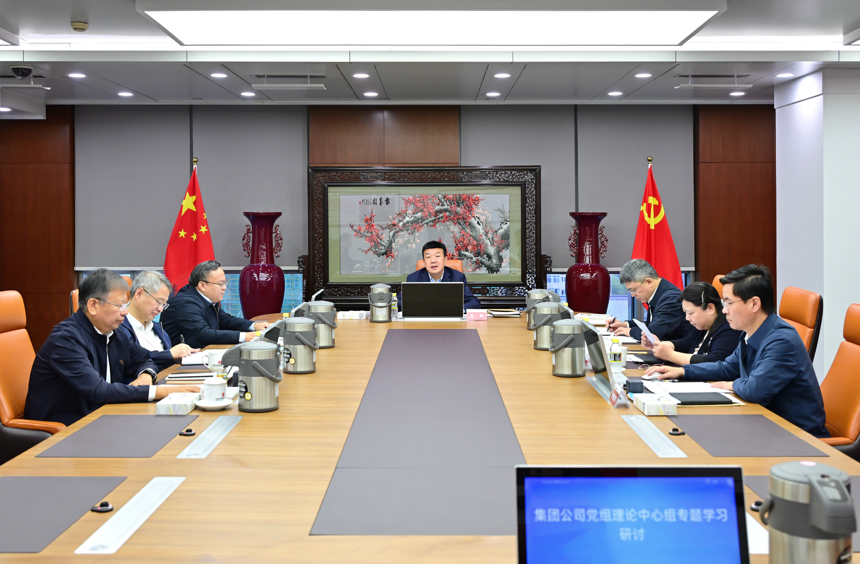 集團(tuán)公司黨組書記、董事長(zhǎng)呂軍主持學(xué)習(xí)并講話,集團(tuán)公司領(lǐng)導(dǎo)李向良、余波、王瑛、陶云鵬、李建偉、王海騰參加專題學(xué)習(xí)研討。