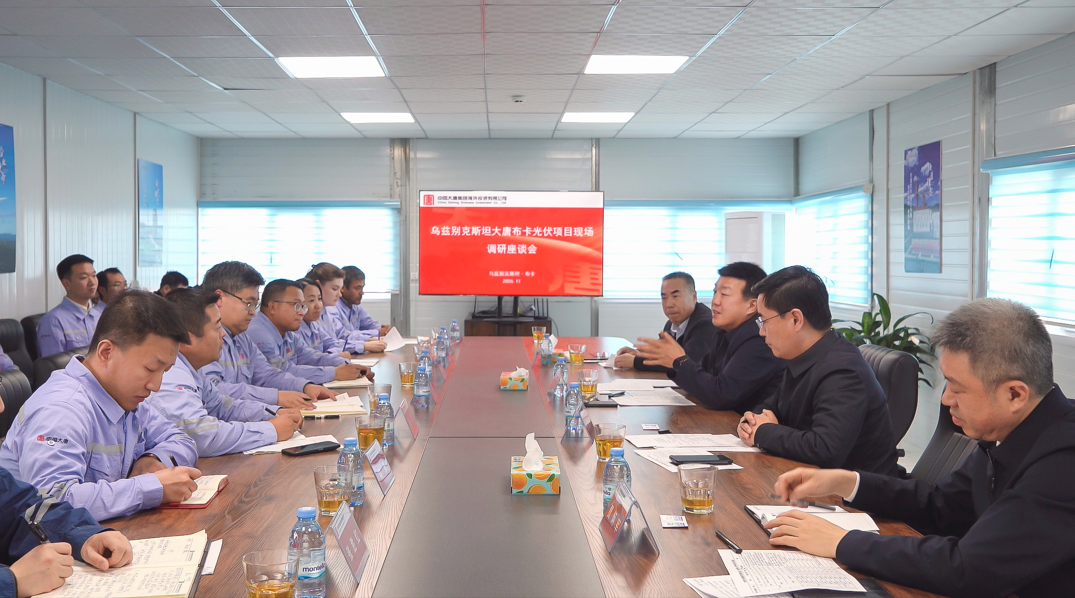 當(dāng)?shù)貢r間11月10日至11日,呂軍分別前往大唐烏茲別克斯坦布卡光伏項目、中亞代表處、布卡二期光儲項目規(guī)劃建設(shè)地塊考察調(diào)研,深入光伏廠區(qū)、中控室等地詳細(xì)了解生產(chǎn)運行情況,看望慰問項目一線干部職工,并參加布卡項目現(xiàn)場調(diào)研座談會。
