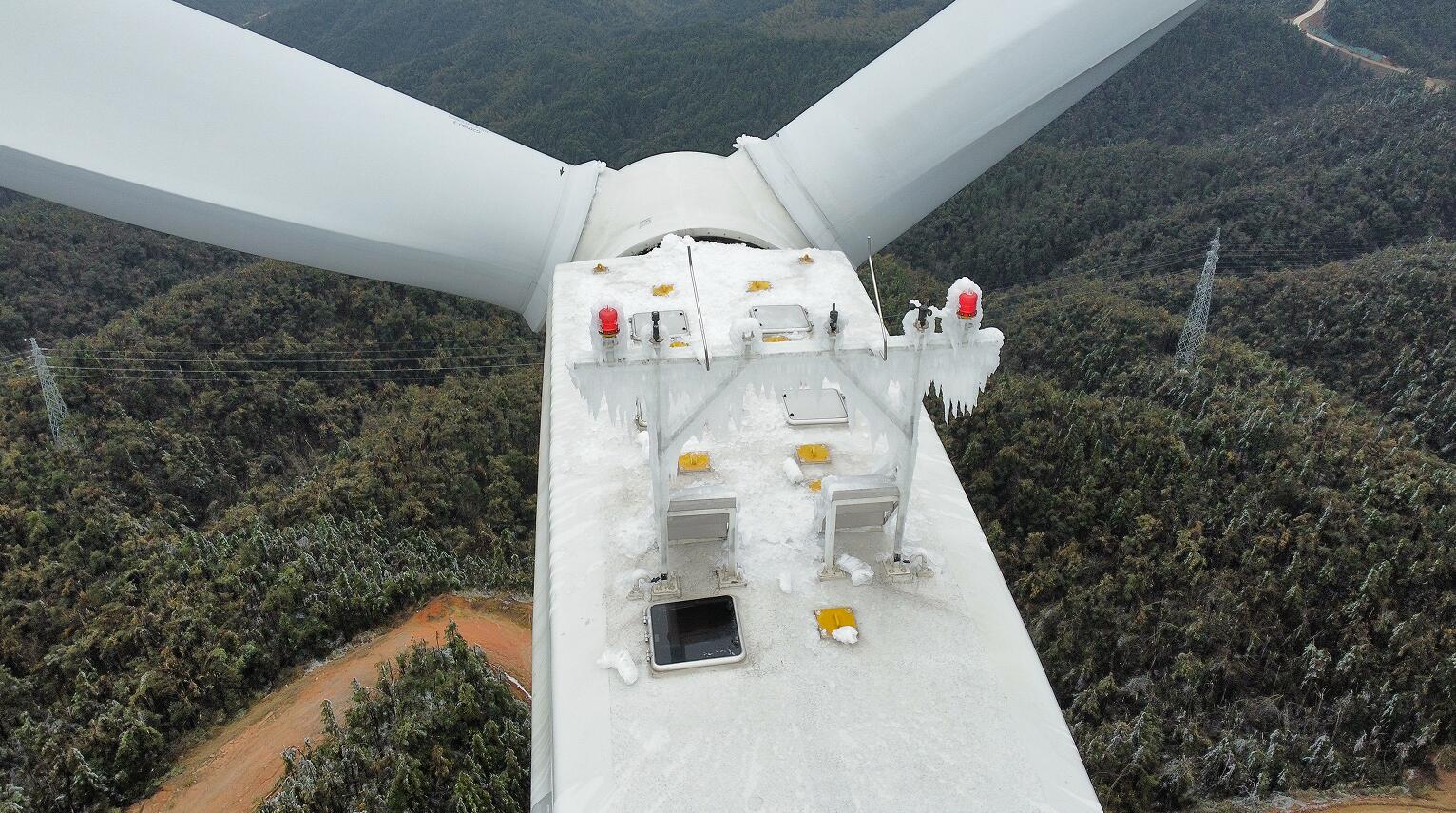 在此次覆冰前后的過程中,江西新能源公司運(yùn)維人員緊盯設(shè)備情況,覆冰時(shí)及時(shí)手動(dòng)停機(jī),對解除覆冰的風(fēng)機(jī)開展現(xiàn)場查看,確認(rèn)后進(jìn)行啟機(jī),13個(gè)場站成功處理并解決7次因冰雪造成的集電線路和外送線路跳閘事件和多臺(tái)箱變外殼被葉片融冰砸損情況。