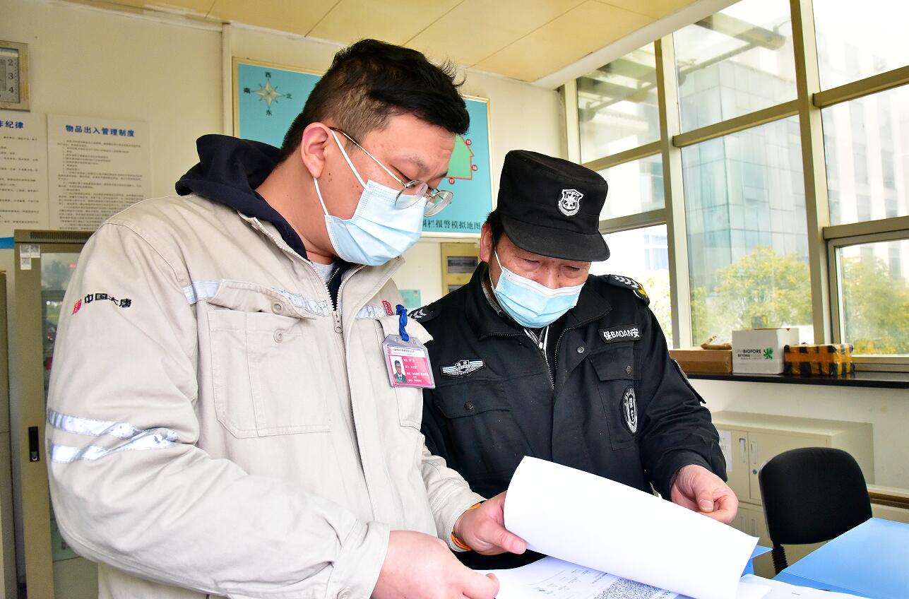 胡楓在門(mén)衛(wèi)處檢查人員出入登記情況