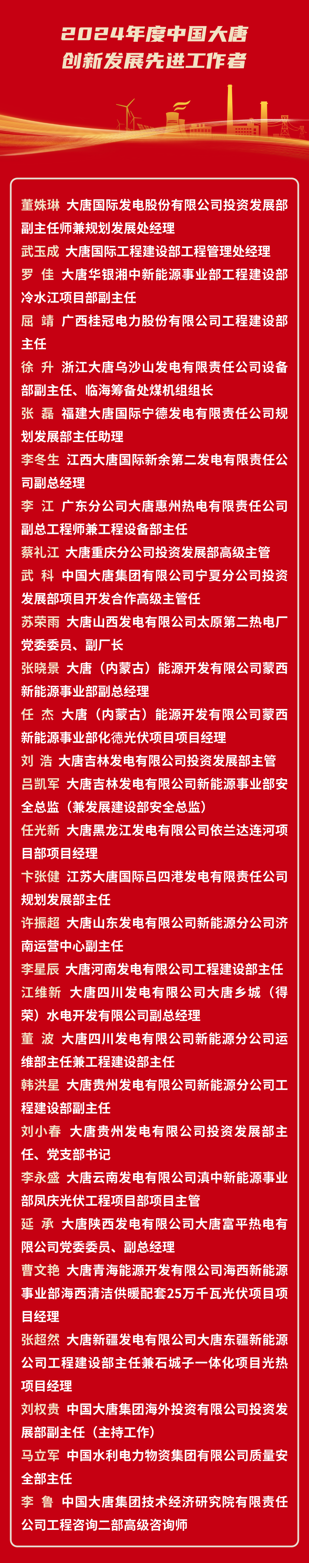2024年度中國大唐集團(tuán)有限公司創(chuàng)新發(fā)展先進(jìn)工作者