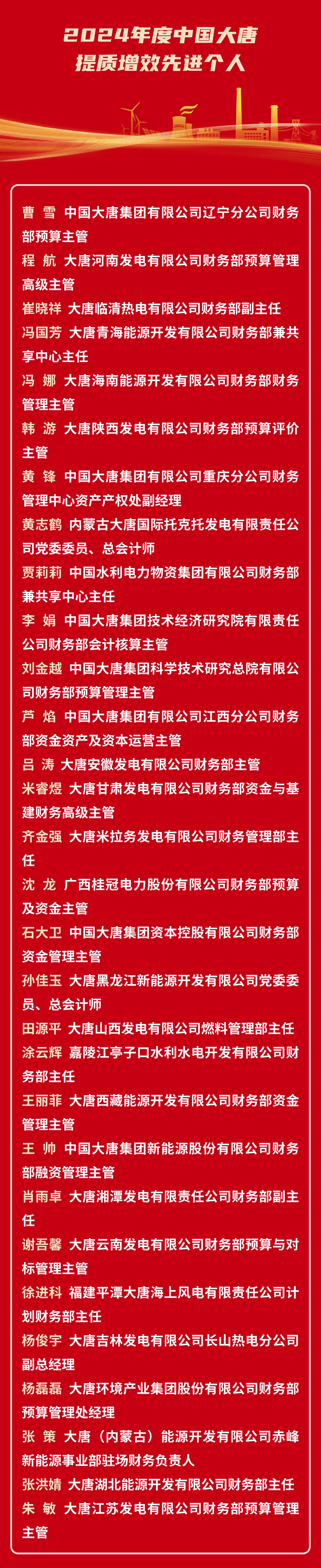 2024年度中國大唐集團(tuán)有限公司提質(zhì)增效先進(jìn)個(gè)人